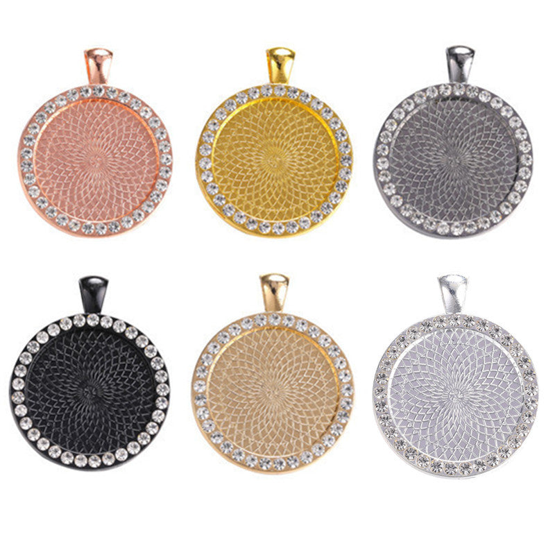 25mm circle rhinestone blank necklaces pendants trays custom sublimation photo picture personalized necklace jewelry